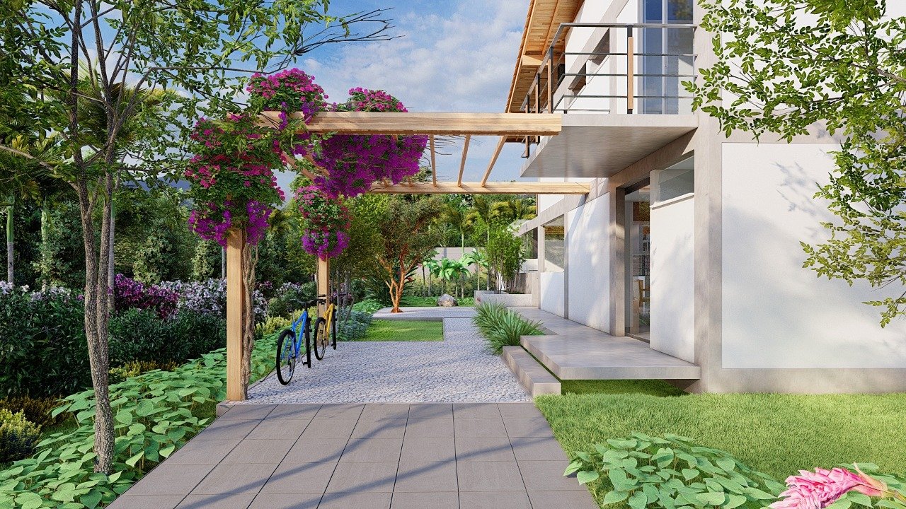 – Paisagismo com espécies nativas ou adaptadas, que não precisam de rega automatizada e grandes cuidados, além de favorecer a fauna e flora local.