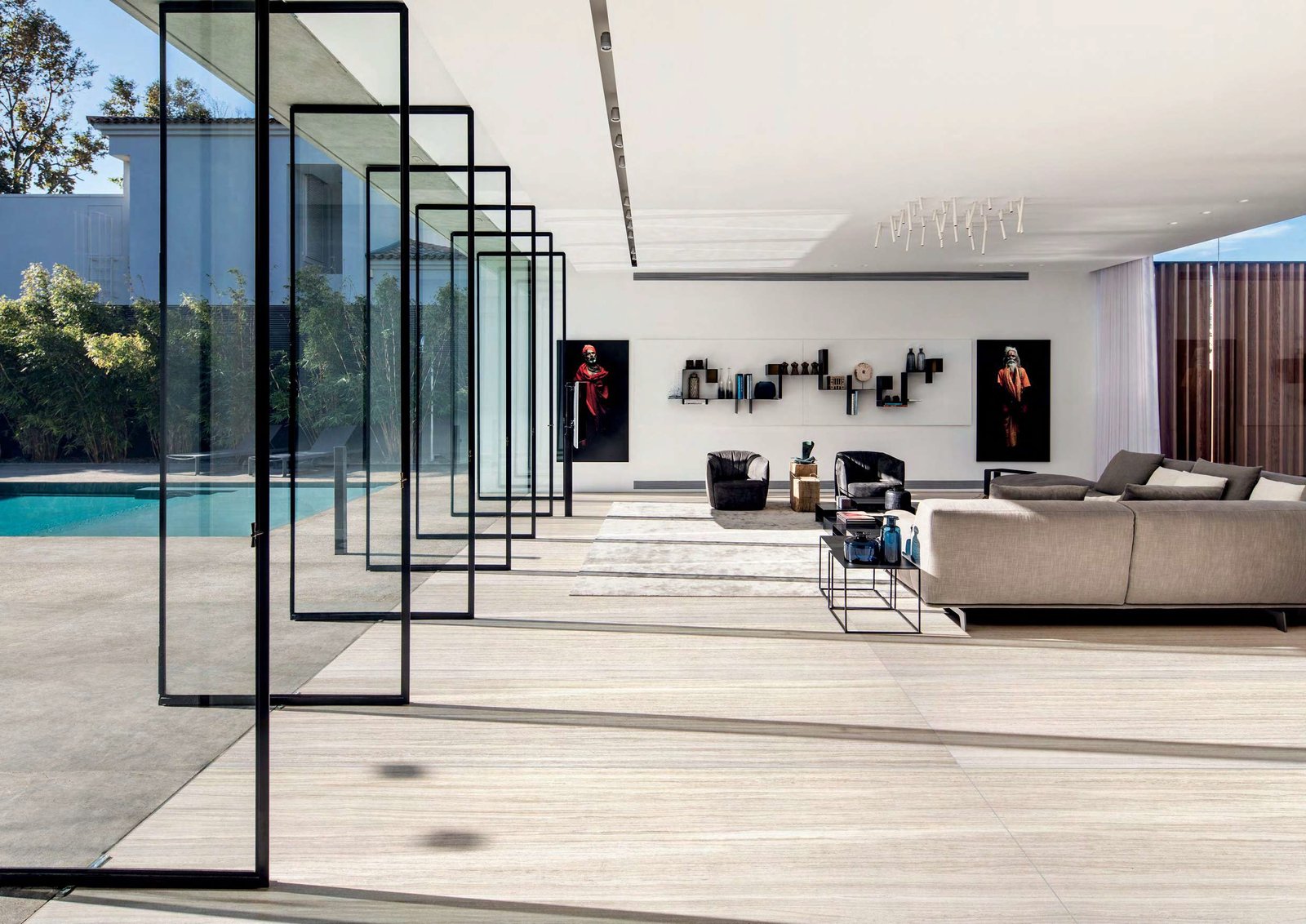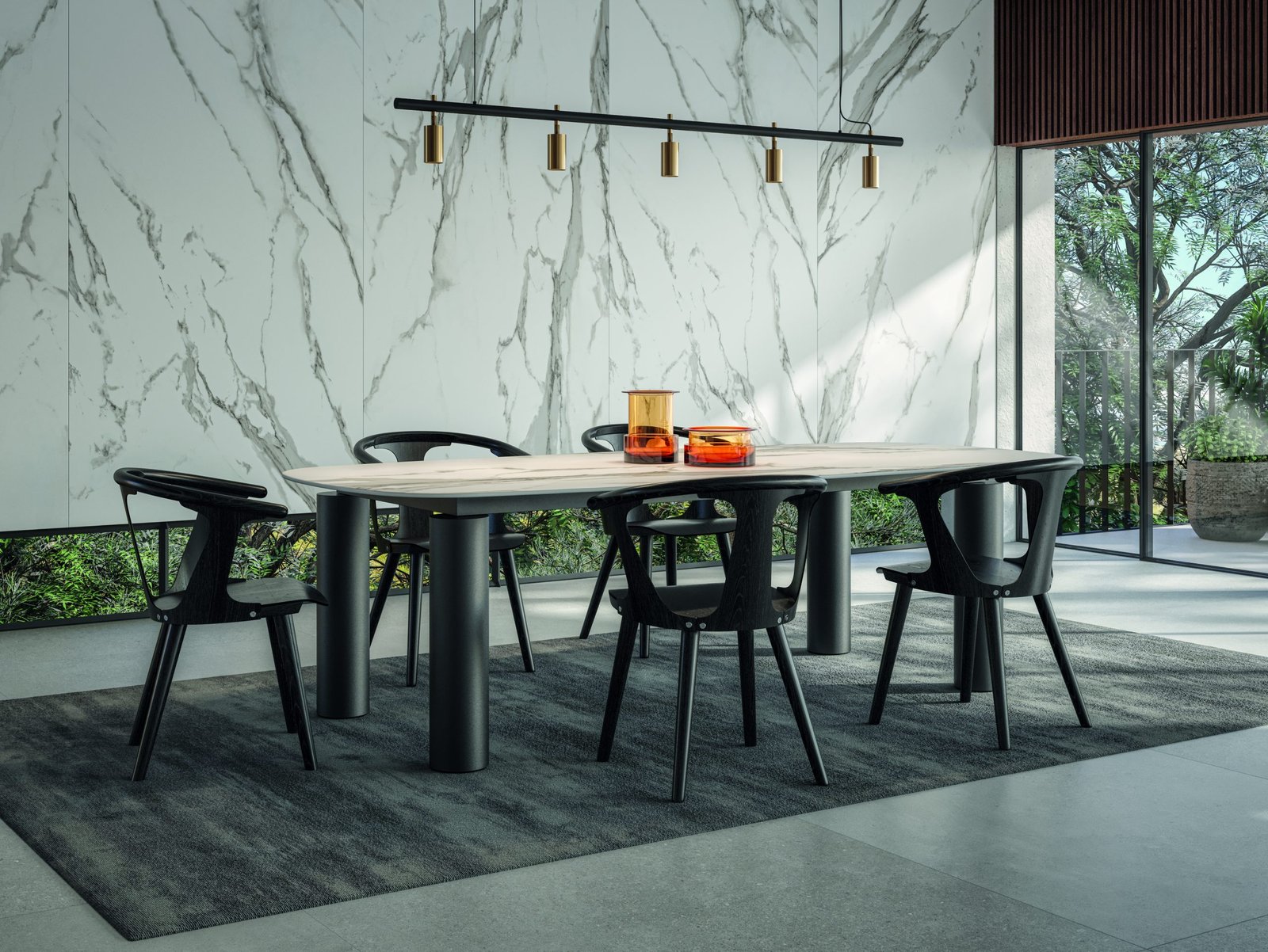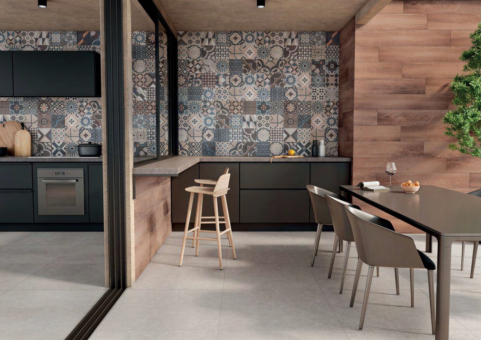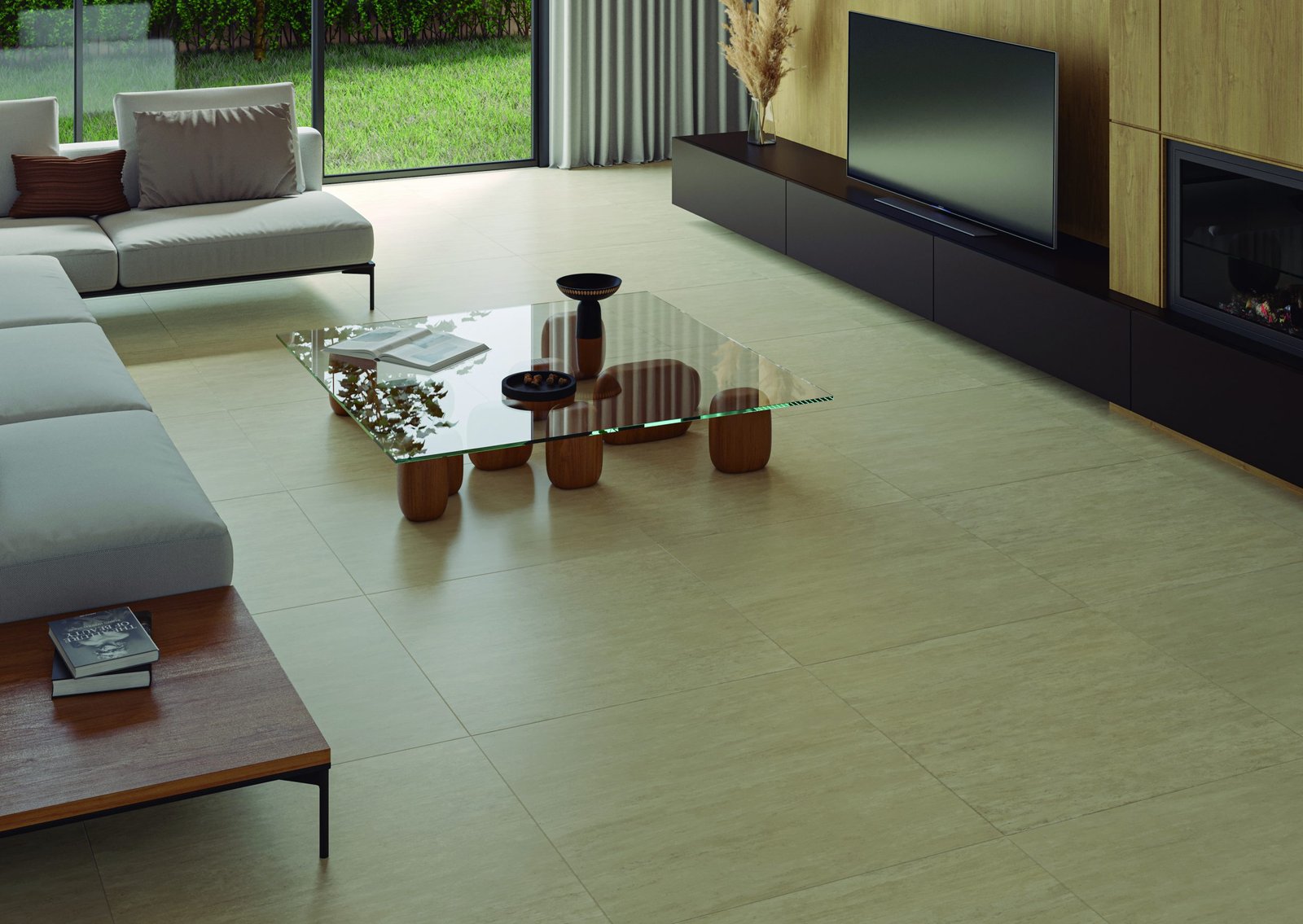 Um dos destaques da Portobello é sua coleção de lastras, revestimentos com superfícies contínuas em megaformatos. Disponível em dimensões que vão de 160×320 cm a 60×120 cm, esse tipo de porcelanato é multiuso e oferece maior dinamismo de paginação. As lastras já são forte tendência, atuando como elementos construtivos visualmente integrados aos detalhes arquitetônicos, valorizando mesas, portas e bancadas, painéis de parede, e permitindo liberdade e criatividade na aplicação.