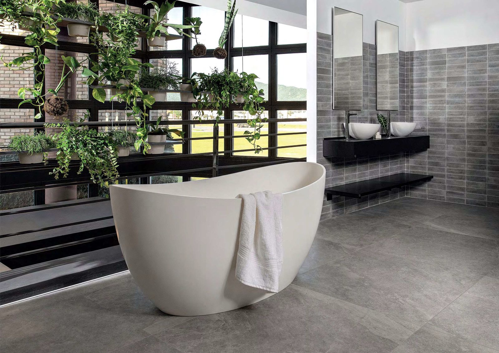 Em sua linha de revestimentos, a Roca aposta em lançamentos que equilibram e complementam seu portfólio, com soluções que acompanham as principais tendências globais. Os destaques são as linhas Cross Cut (120×120 cm e 120 x 250 cm), rocha derivada do quartzo, cortada transversalmente, com acabamento Micro Crystal e Acetinado; e a Concrete Greige e Off White (120×120 cm e 120×250 cm), que ressignificam o concreto aparente, textura cada vez mais valorizada na arquitetura contemporânea.