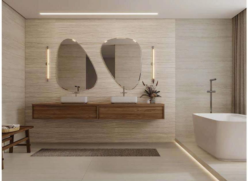 Aqui, a regra é ousar, misturar materiais para combinar. Um bom exemplo dessa tendência é que piso e paredes não precisam ser iguais, podem ter diferentes tonalidades, formatos, estilos e texturas. Entre os queridinhos dos arquitetos estão os revestimentos geométricos e com efeito 3D.