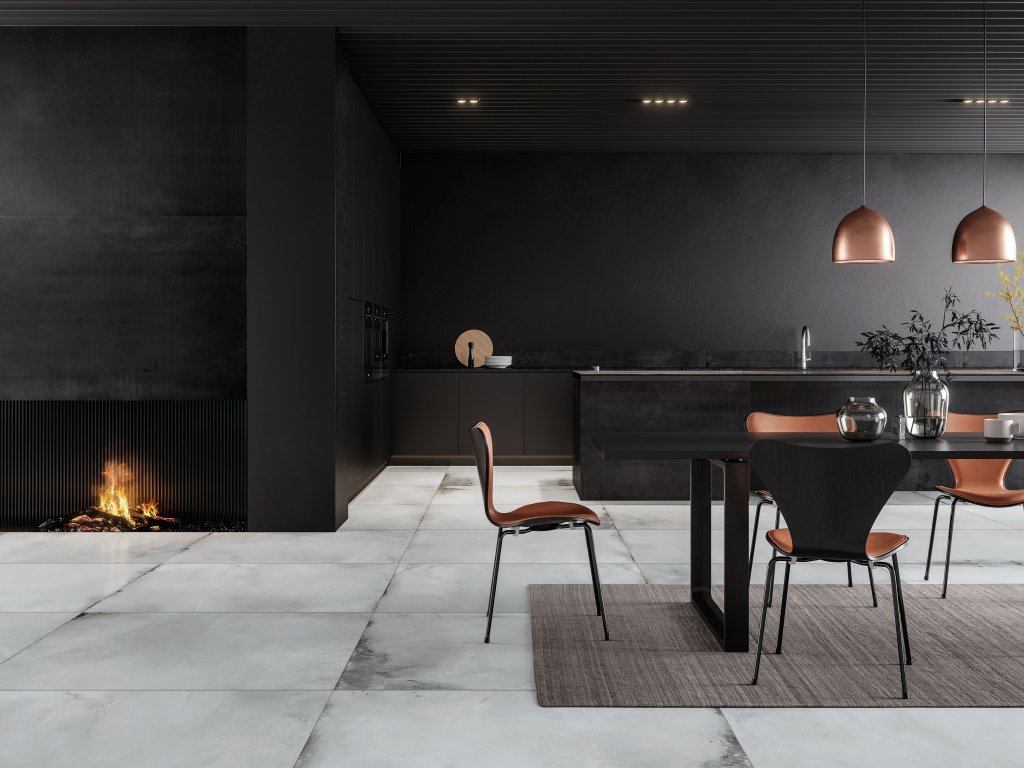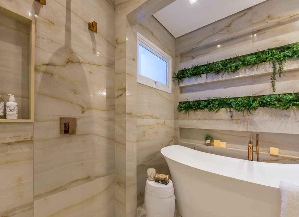 Enquanto a madeira proporciona aconchego aos ambientes, o metal garante um ar contemporâneo, com estilo industrial. Entre os revestimentos, os porcelanatos amadeirados continuam em alta, oferecendo versatilidade e praticidade, além de serem sustentáveis. Os metais com acabamento preto ou aspecto oxidado são as maiores tendências para esse material.