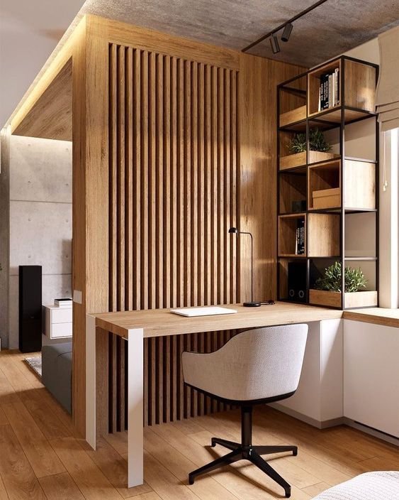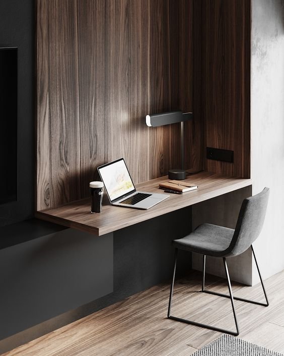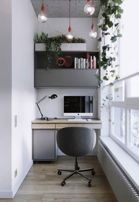 Mesmo em pequenos apartamentos, é possível ter um cantinho separado para o trabalho, com uma bancada e uma cadeira adequada, para garantir conforto e produtividade. Além disso, é importante pensar na iluminação e em soluções para armazenamento de materiais, mantendo o ambiente organizado.
