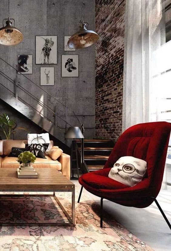 A combinação de elementos neutros, como madeiras e metais, com móveis e objetos de decoração com cores mais intensas resulta em espaços rústicos e modernos, com um toque de sofisticação. Preto, cinza, amarelo e vermelho são algumas das cores que se destacam nesse conceito, onde os tons mais sérios são equilibrados com a descontração dos mais vibrantes.