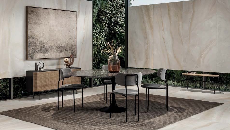 A beleza atemporal do mármore, com todas as suas nuances e desenhos, continua em alta, especialmente nos grandes formatos, para aplicação tanto em pisos como em paredes e bancadas.