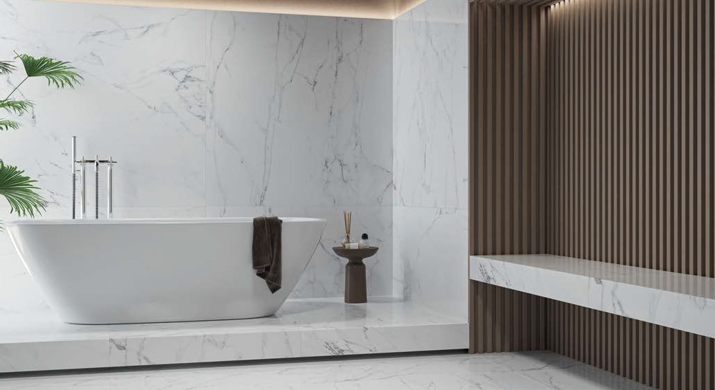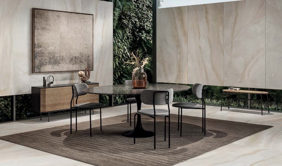 A série Athea impressiona ao primeiro olhar. A profundidade dos veios e as nuances marcantes presentes no porcelanato 120×120 cm evidenciam ainda mais a aparência da pedra natural. Em duas versões, polida e Soft Touch, é ideal para ambientes onde se deseja ressaltar a atmosfera clássica.