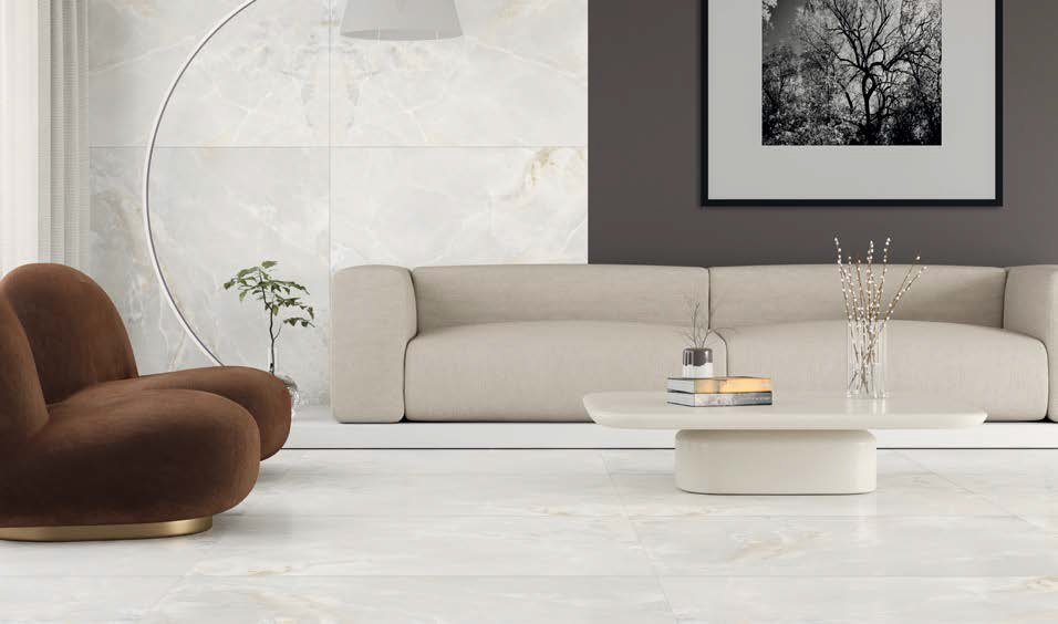 Na coleção Allure, Roca traz a beleza atemporal do mármore Ônix, com todas as nuances e desenhos. Os destaques da série são o formato inovador e os acabamentos da superfície. As grandes peças 100×200 cm proporcionam uma aplicação uniforme, que reduz consideravelmente a percepção das juntas nos ambientes.