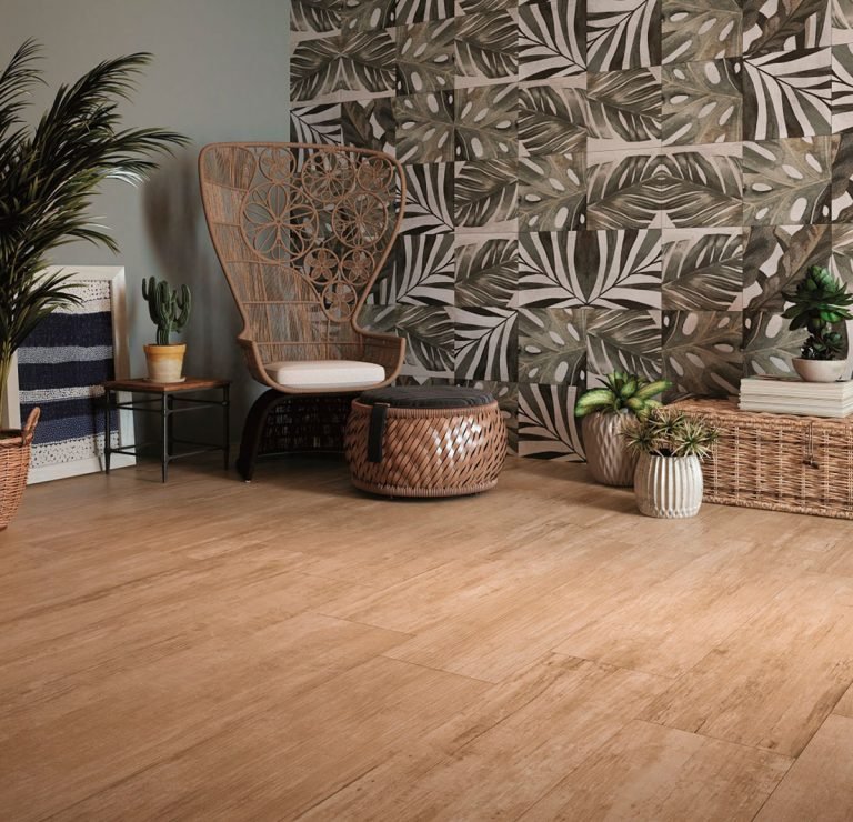 A linha Amazon, da Biancogres, é uma ótima opção para quem busca a sensação de estar próximo da natureza. Esse revestimento traz estampas de folhagens e remete a uma experiência sensorial única, que segue a tendência Urban Jungle.