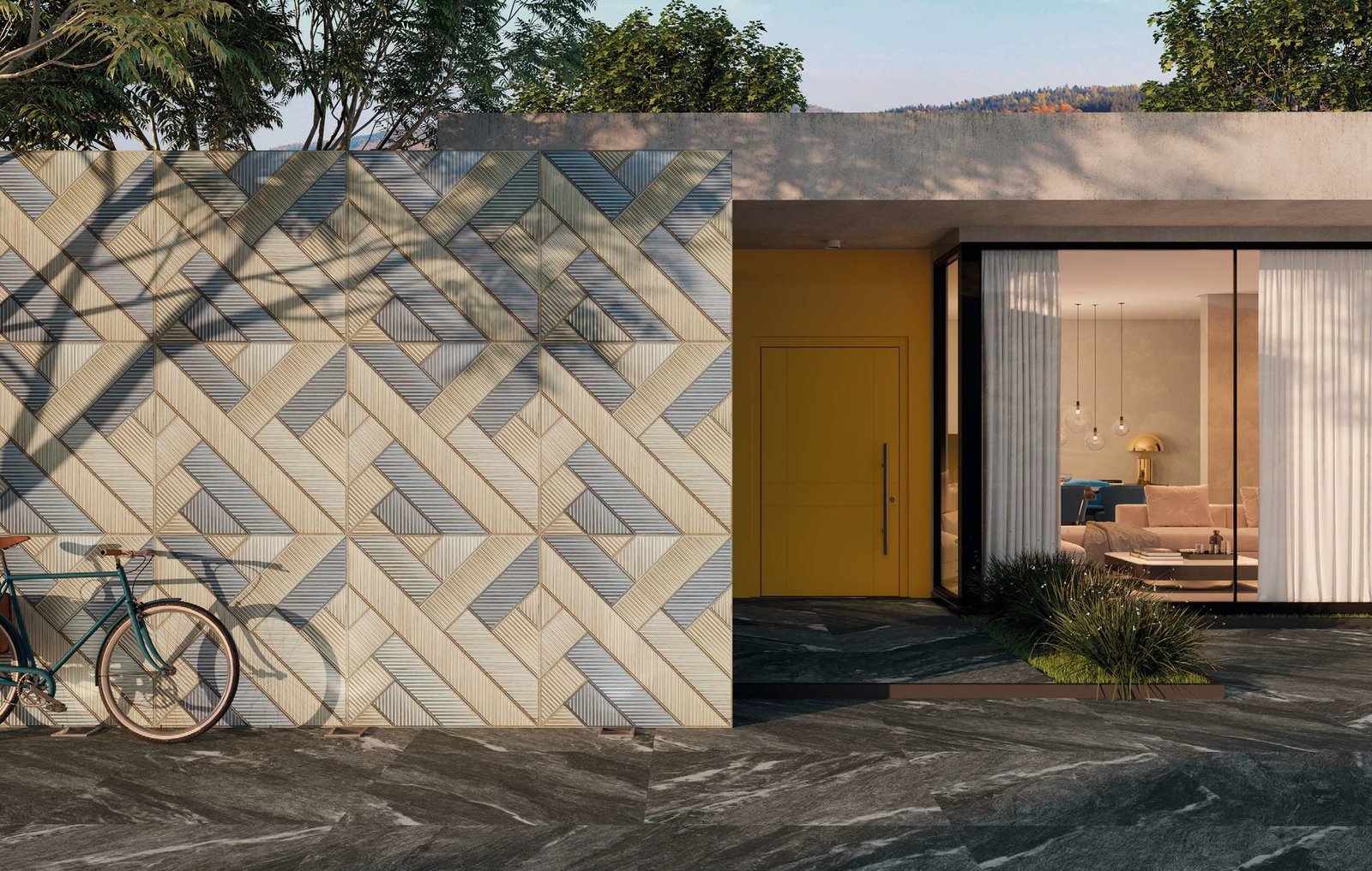 Um entrelaço de cores, direções e texturas traz a natureza para a decoração, de forma inusitada. A coleção Ceusa Entrelaçada conta com três revestimentos com cores distintas, mas que se assemelham nas formas e traços geométricos. São peças decorativas com formato de alto impacto e relevos bem definidos, compostos por ripas assimétricas, explorando três tipos de gráficas na superfície: madeira colorida, cimento pigmentado e inspiração botânica.